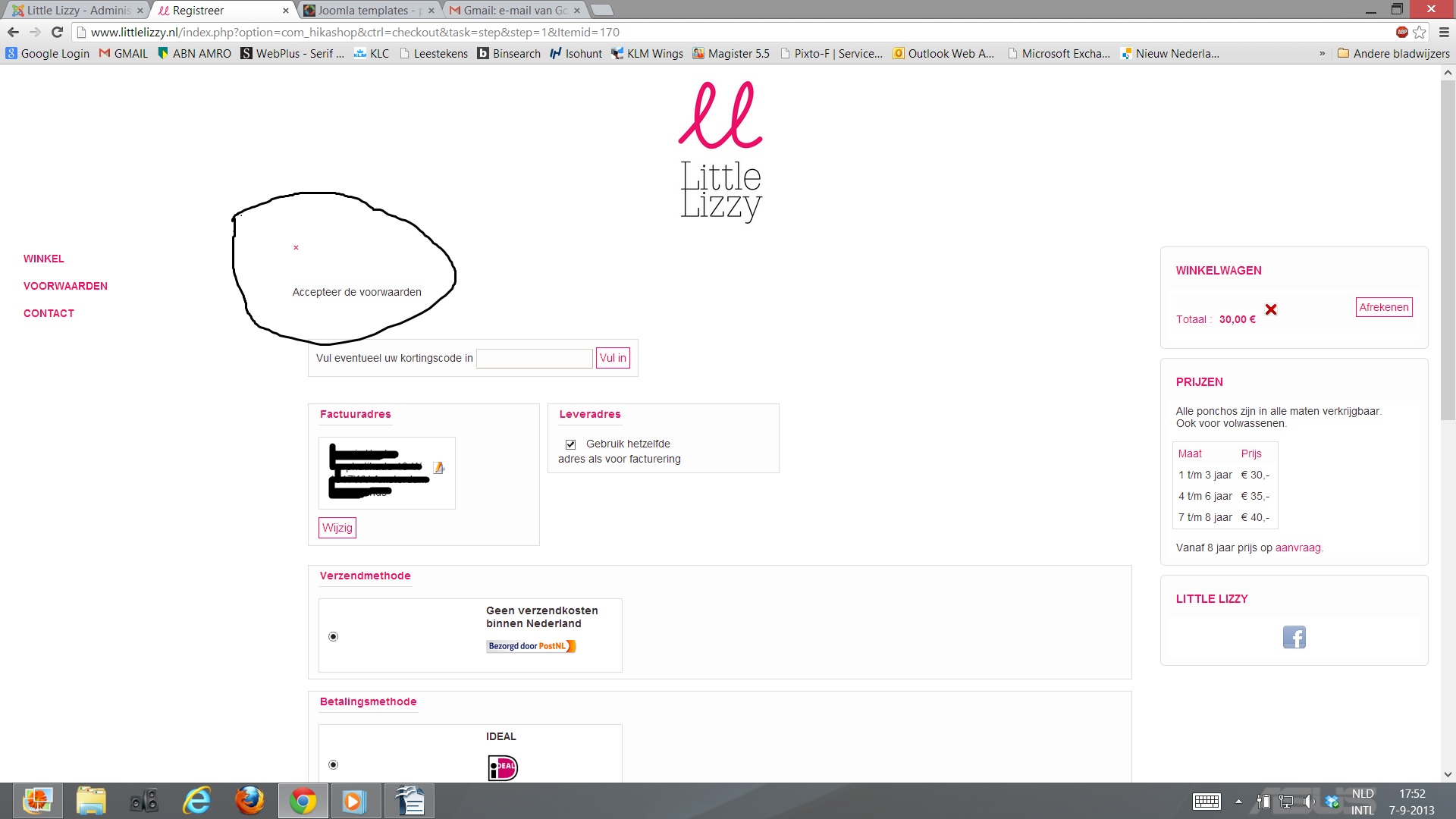 When a client goes to checkout, he/she gets a joomla warning "accept terms and conditions" by default at the top of the checkout-page.