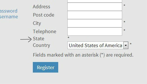 On checkout the form field "State" is empty. All State fields for the United States are published.