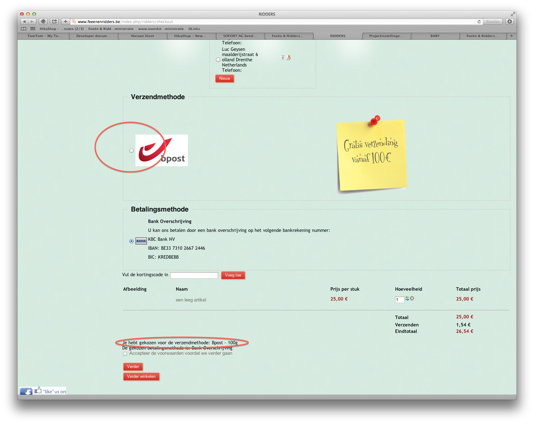 I did what you told me, but…. Now when I go to my shopping cart, I select the shipping method (in attached screenshot only one available), I select the payment method, I select the agree with conditions and press 'next' button. Then the shipping method will be unselected again and it has to be selected again before we can go further with the payment. There is no indication that the problem is that the shipping method is not selected. Please have a look at this!