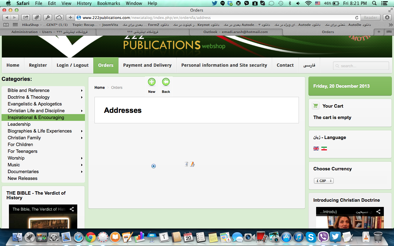 Hi, I have mentioned this before but no one could help me with my problem. As soon as a user registers in our website, there's a BLANK TELEPHONE added to his/her address without him/her adding anything to their address. and that way when they go to CHECKOUT, instead of seeing the NEW ADDRESS popup, they don't see anything and that BLANK address is selected for them, so if they finalize the order, the order is made and there's no address for that. This is a major bug right now, because I have to manually remove the blank address added before the user goes to checkout. I remember there was an <SFPRINT> link in the addresses file and I removed that because I thought this happened because of that but I was wrong. It happens even now after I removed that line. What's wrong with my site? Please help me because this is really annoying and I can't stop it from happening.