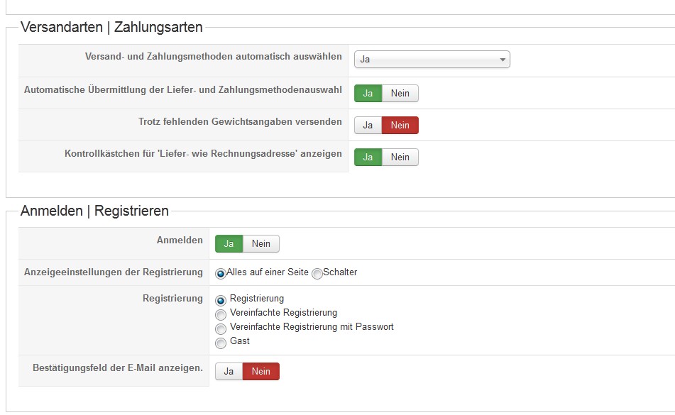 Another weired thing is that when I click in the cart on order I see on top - shipping and paying method is not chosen and under that the login or register window(pic 2)... the message should be usually not there, huh? (Customers have to be registered to buy something)