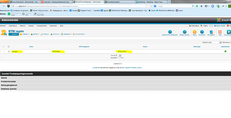 I upgraded (finaly) to Hikashop 2.2.3 (from 2.1.1). There were several things to adjust and many are solved, but there is one left. The tax is not showing on the checkout page. This wordked fine for years in Hikashop 2.1.1 (and before). I've tried everything, made a complete new taxcategory, zone, rate. It's just not showing up in the checkout. The productpage shows the price with tax, but once in the checkout the tax doesn't show anymore. (The url provided is a not used url for testingpurposes).