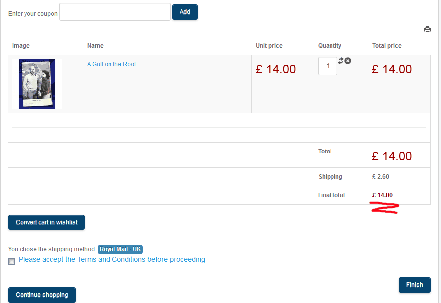 (basically, choose any book, go to checkout and the shipping price, while displayed, is not added)