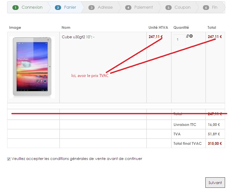 Simplifier l'affichage du résumé de la commande
