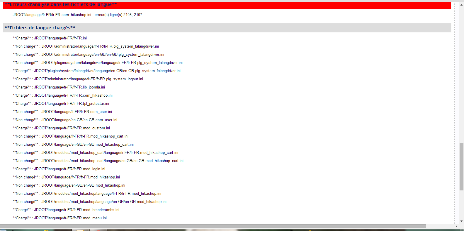 Puis, j'ai mis l'error reporting sur développement, et toujours pas de message d'erreurs en haut de la page, mais en bas dans la "console" debug, il y a plus d'info. J'ai inclus 2 captures d'écrans.