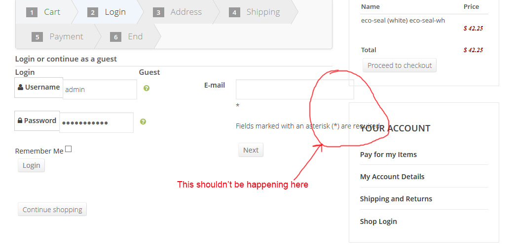 The main container for the checkout process for STep 1 (which is login for my site)