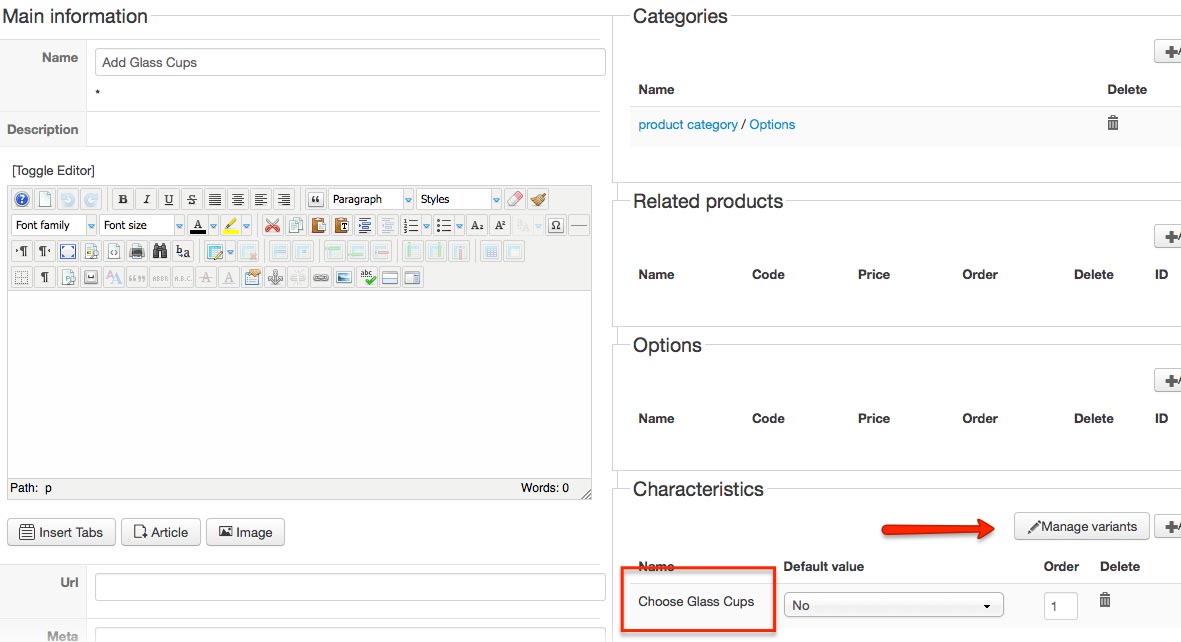 What we've done here was create a product option based on Characteristics/variants.