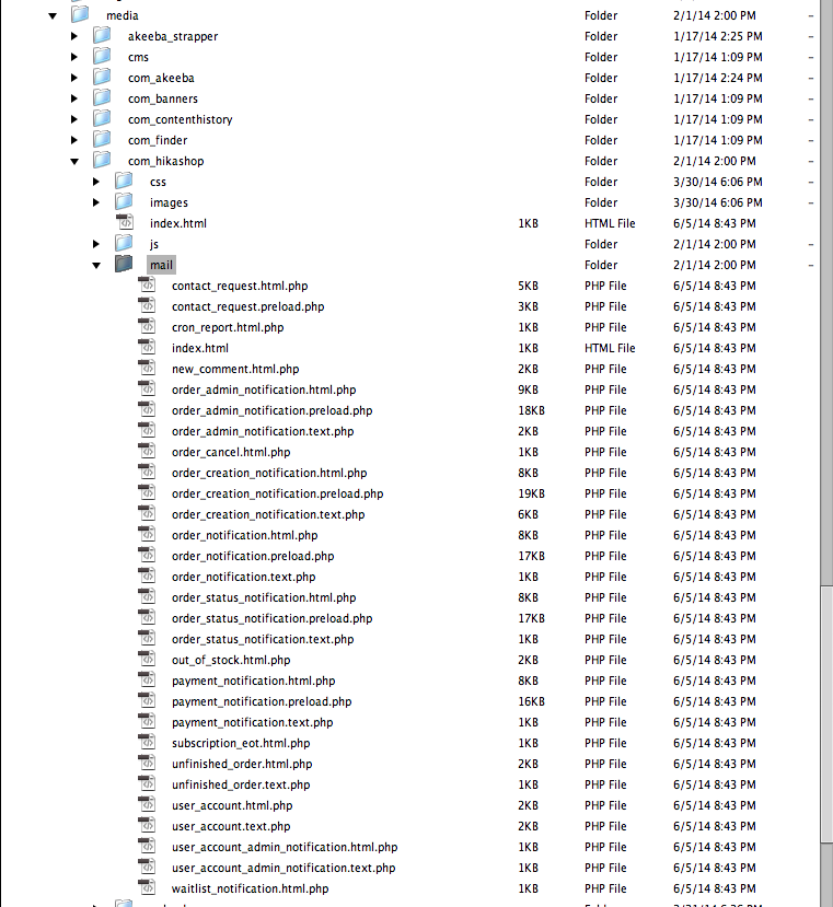 I tried finding the "email edition page" and "view checkout" pages in the media/com_hikashop/mail folder, but couldn't.
