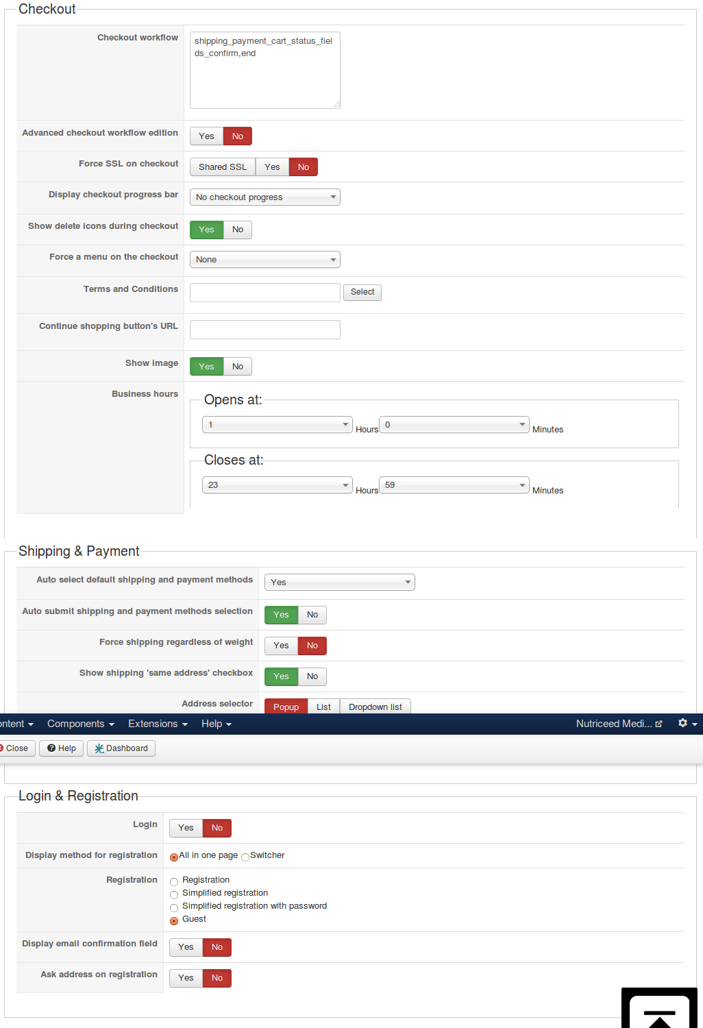 I am attaching my checkout settings.