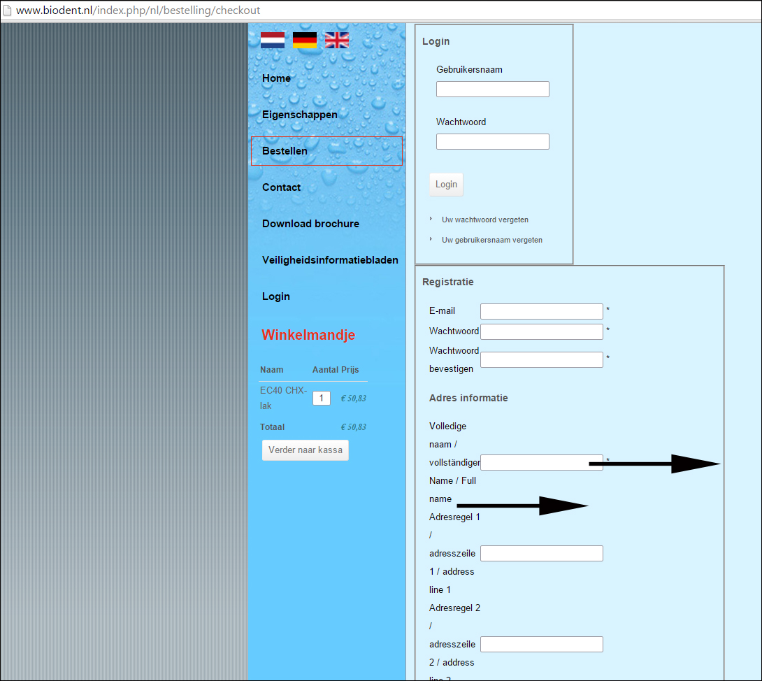 Forgot username and password are now visible. However, another problem now shows up (see attachment). I want to move the input box to the right and widen the part 'Volledige naam / vollständiger Name / Full name'. Can you tell me where to modify the table-configuration?