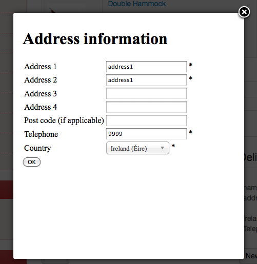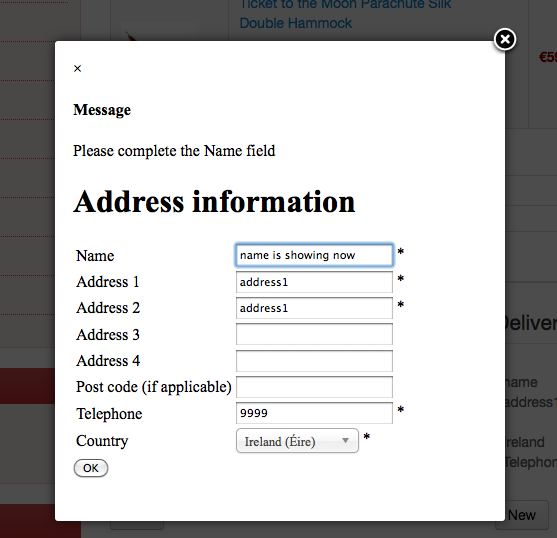Beforehand I had a Pop up as an address selector, but in the pop up the first field: "name" was missing, and the warning: "Please complete the Name field" showed up along with the name field and when you add it there it applies changes (all steps attached). Again both addresses change simultaneously.