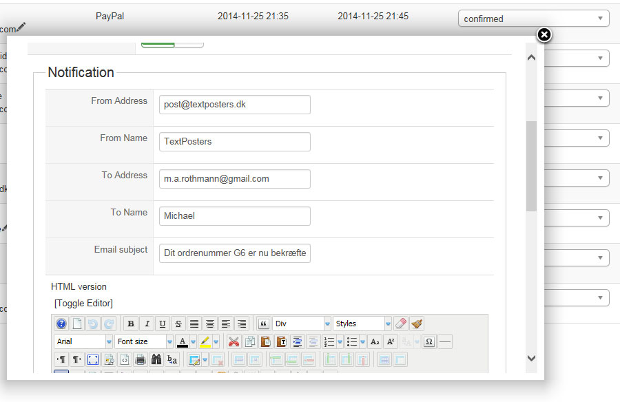 Notification on payment send from PayPal to admin OK