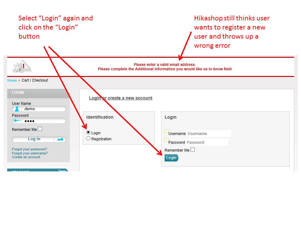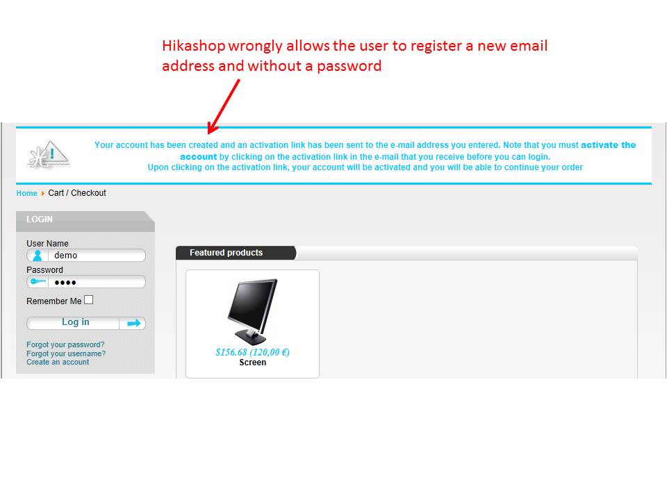 Hikashop wrongly validates the registration and also allows the user to register without having a password during the checkout process.