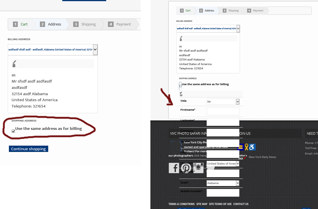 During the checkout phase of my shop, user will add their email and address, after that they will get to a page with the address they inputed and an option to use the same address for shipping or to add a new shipping address, but this runs off my page on the bottom, how can i move it to the right of the current billing address?