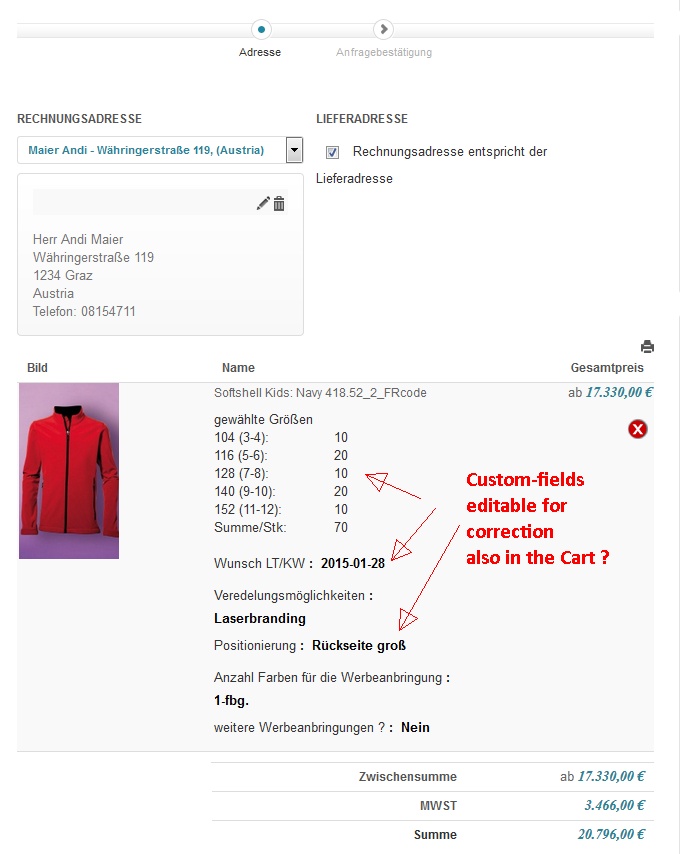 But my customers wants also to correct some Options later during Checkout in the Cart-Display