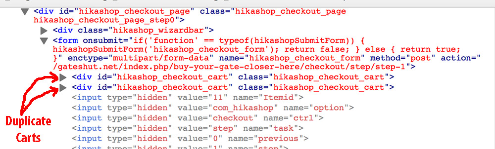 Attached is the firebug code from the page, there are 2 cart divs loading in the content area