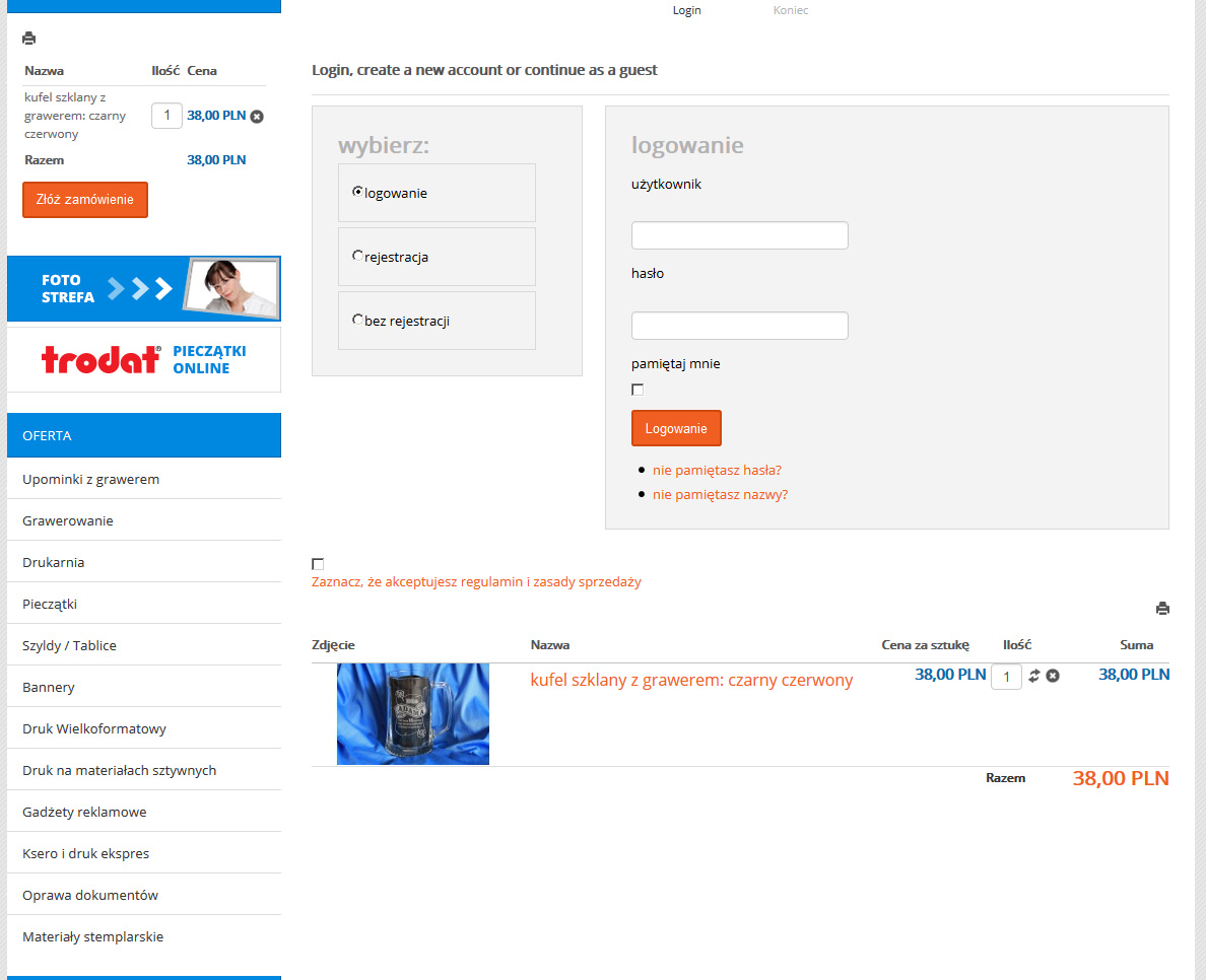 I mean I change to radio button list with options: "log in", "register" and "buy without registration".