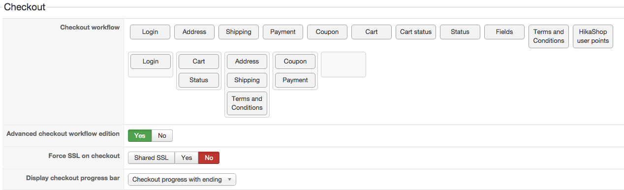 In the Hikashop configuration I have the following settings: