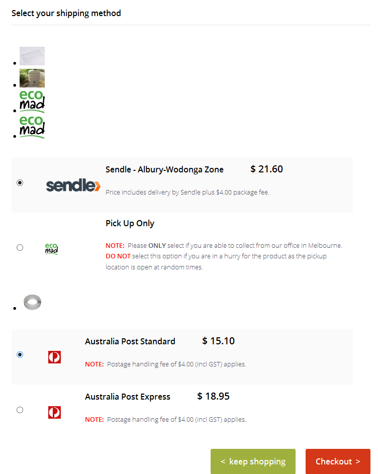 Product A - Can be sent using Australia Post for 1 to unlimited quantities. Can also be sent using a manual shipping method "Sendle" if it is > certain weight and for a postcode range, If this is the case then the customer can get 2 options to send Product A - Australia Post or Sendle. The product here weighs only 60g.