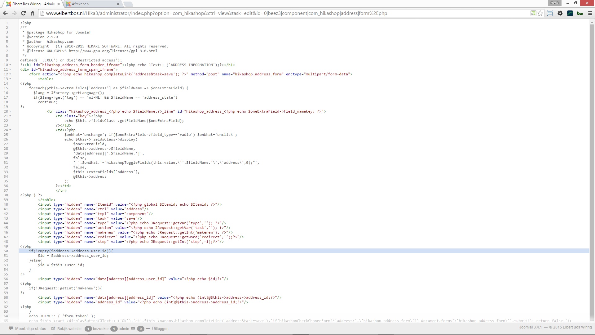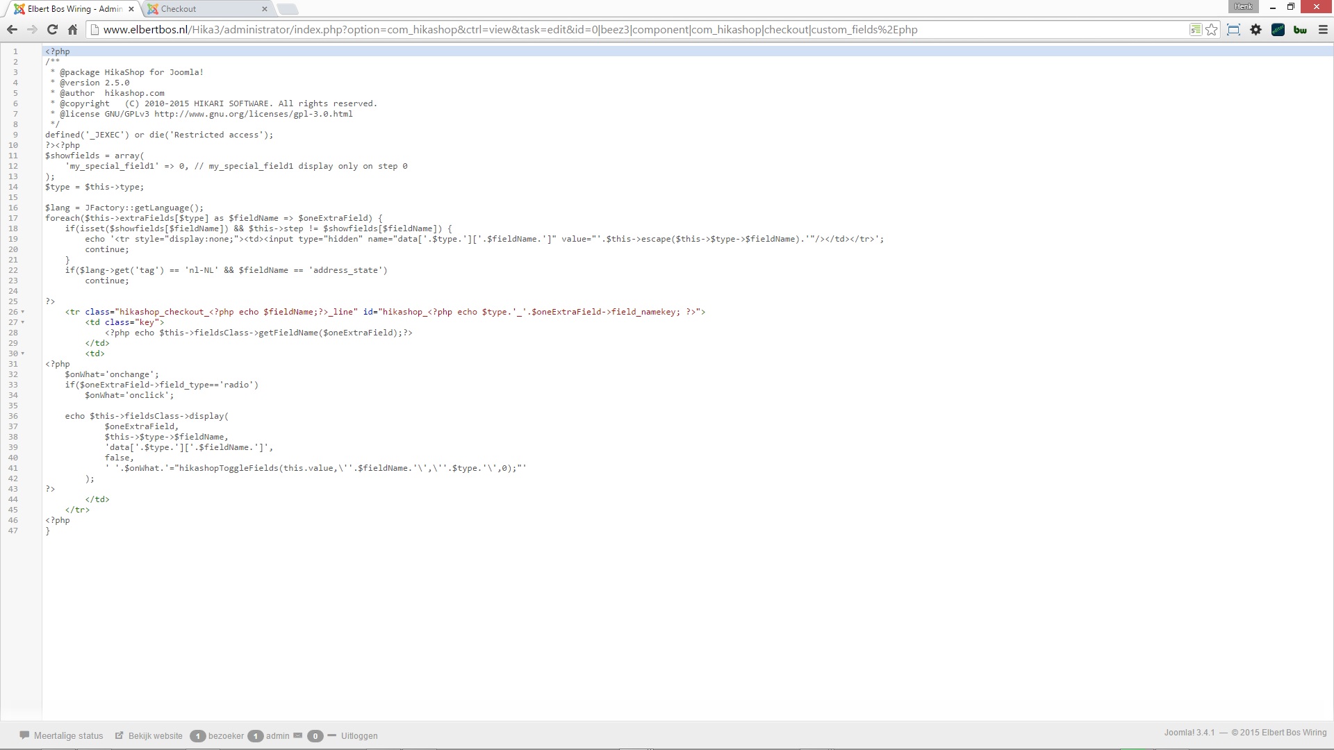 To remove your order custom field (not required) from your Dutch version, the solution will be to directly edit the "custom_fields" file of the "Checkout" view of your front-end template via "Hikashop->Display->Views", and change these lines :