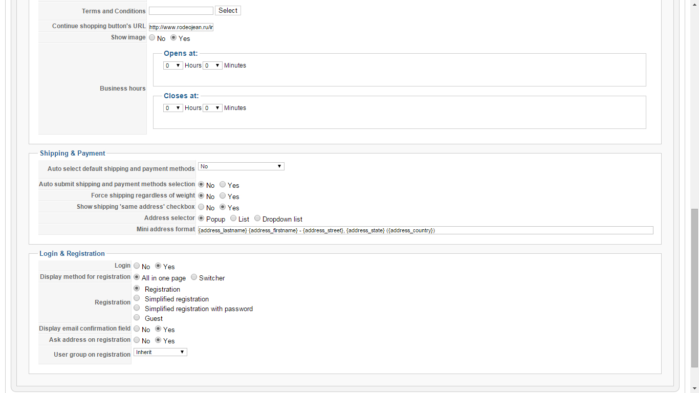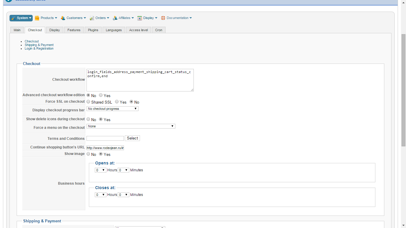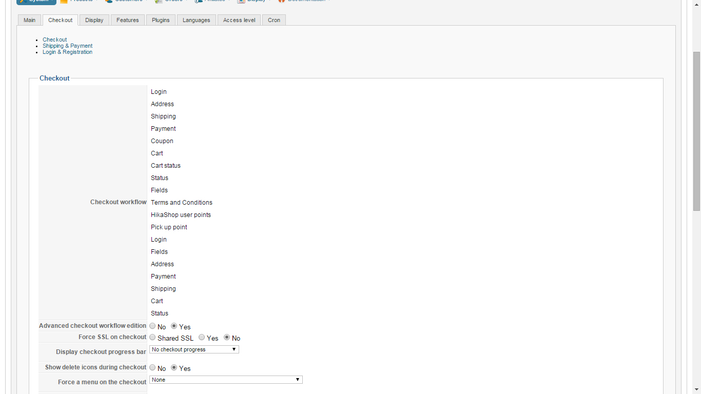 - The "Hikashop->System->Configuration" menu