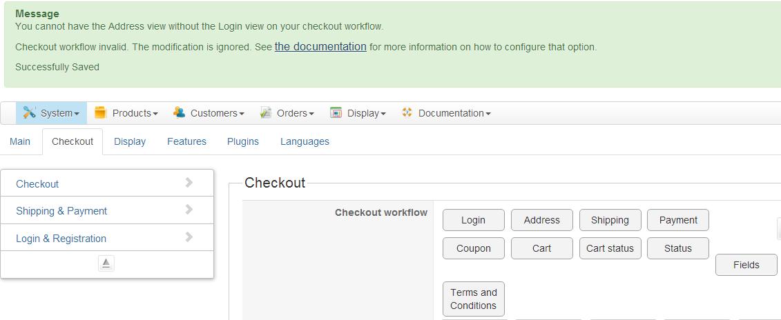 4. The other settings are still being saved. So the message that says that the settings were saved isn't totally wrong. It's only the checkout workflow setting which wasn't updated because the modification made was wrong.