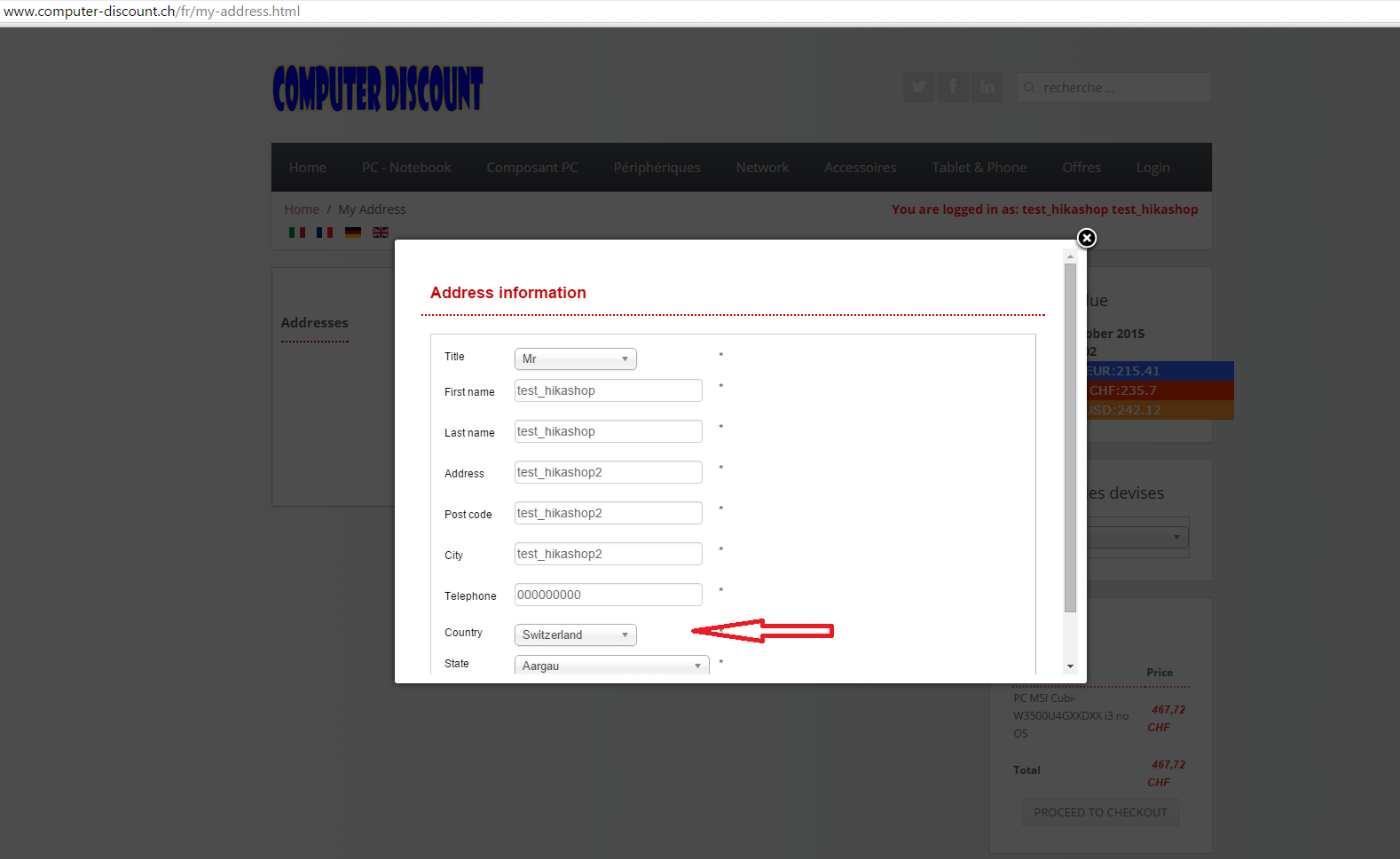 Try to turn off the setting "Use Chosen library" of the HikaShop configuration and see if that helps.