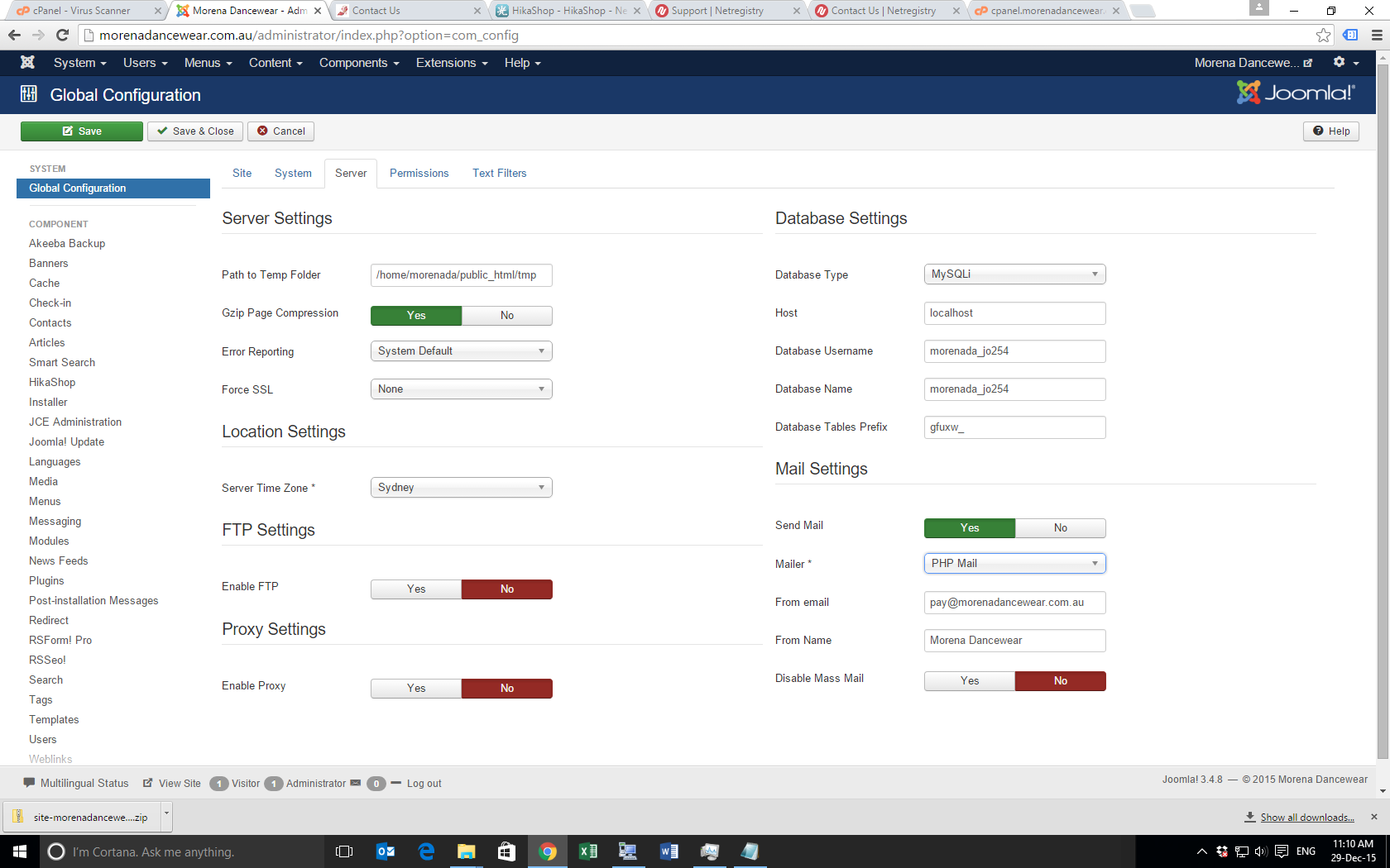 As you see, HikaShop is using Joomla to send his emails ; the email settings are in the Joomla global configuration.