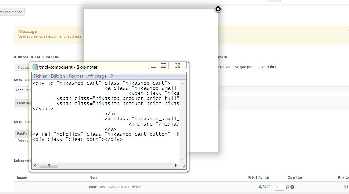 Quand je clique sur "terminer la commande" pour visualiser le panier et valider la commande, une popup sort avec ce script à l'intérieur.