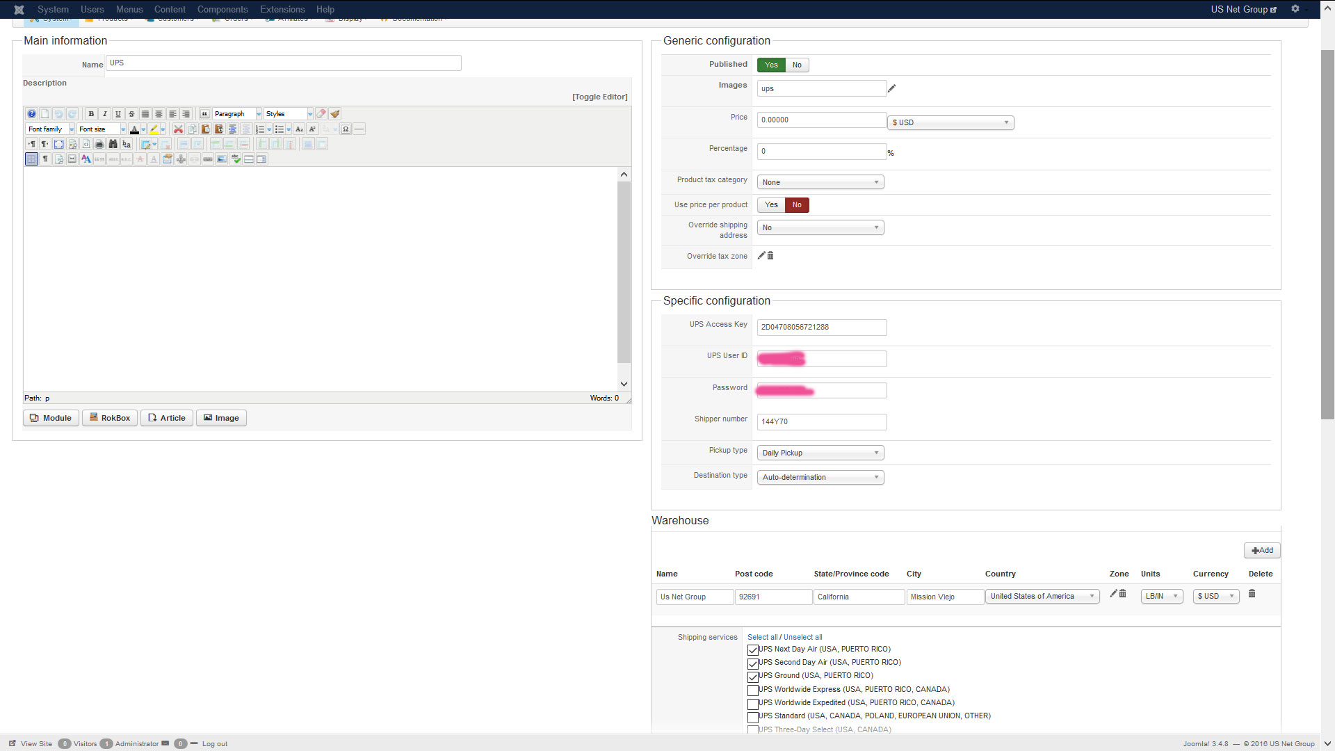 We don't need the username/password, you can blur them on the screenshots. We need to see all the other options of the shipping method.