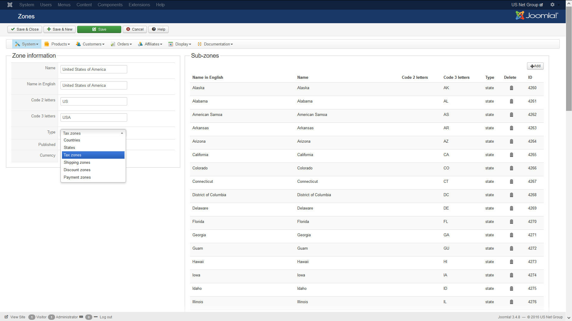 Copied the United States of America data from the countries to the tax zones.