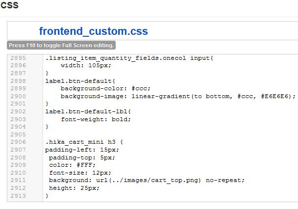 2. under HikaShop > Configuration > Display > CSS I added the following CSS -