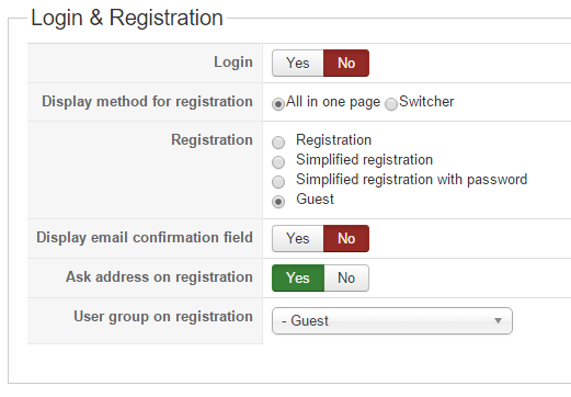 Our site doesn't have user registration at all. (In the past, the user registration checkout was entirely too confusing for our user base). We use guest registration. The relevant config settings are attached in several screenshots.
