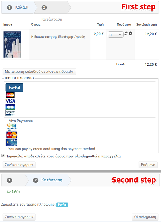 I've two payment options; paypal and vivawallet. The customer selects one option.