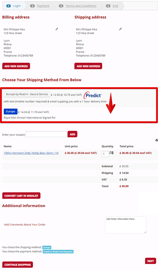There is something strange, I just had a little look on your website and succeed to reach payment step with one product AND when I select other shipping method, everything well work.