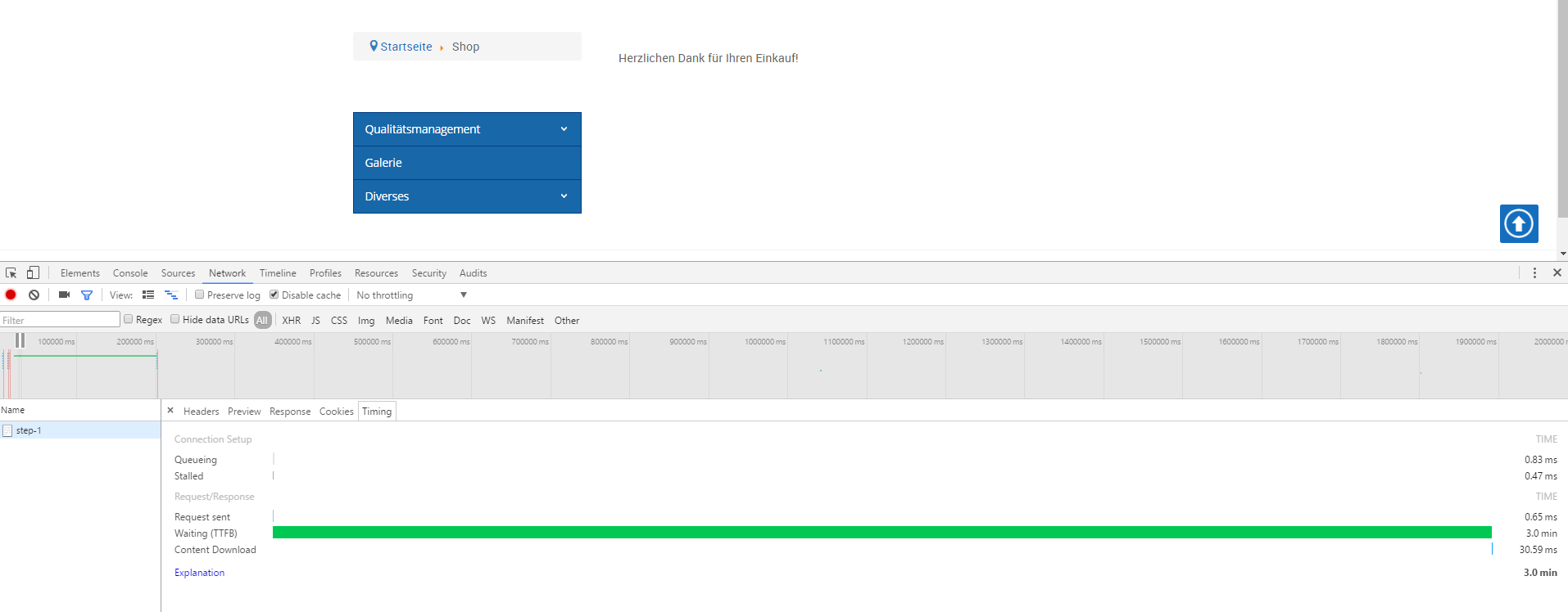 now the weird part. I do even get the e-mails sent, I get the first mail after 60 sec, the second one again after 60 seconds and the third one after 60 seconds, too. So it definetely must be an e-mailing problem. after i recieve the third mail the order is completed and the thank you page is shown instantly. Any idea why the mails are hold back everytime? Any way to disable the waiting for response timer?