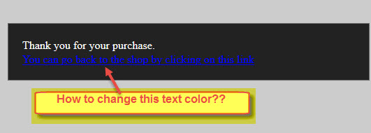 How does one change some of the text color in the "Thank you for your purchase" message?? Please see the attached image.