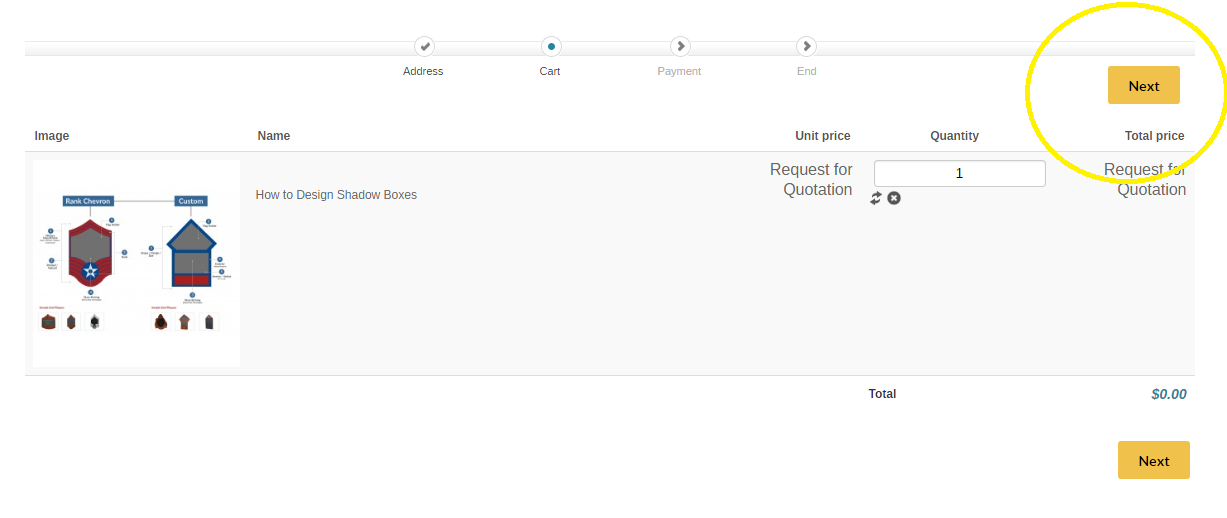 Add a next button on the top of Check out (Cart)