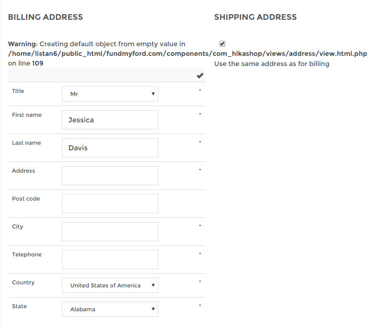 Warning: Creating default object from empty value in /home/xxxxxxx/public_html/fxxxxxxxxxx.com/components/com_hikashop/views/address/view.html.php on line 109