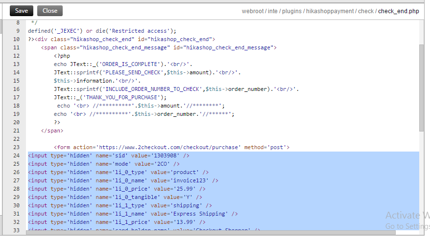 In check_end, you can use that code in order to get the order data: