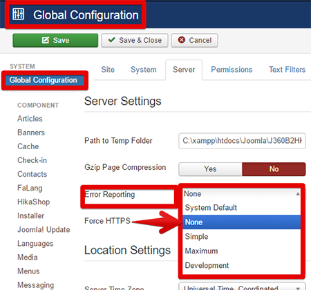 So, go in System dropdown, and select Global Configuration, then in Server tab, see this screenshot :