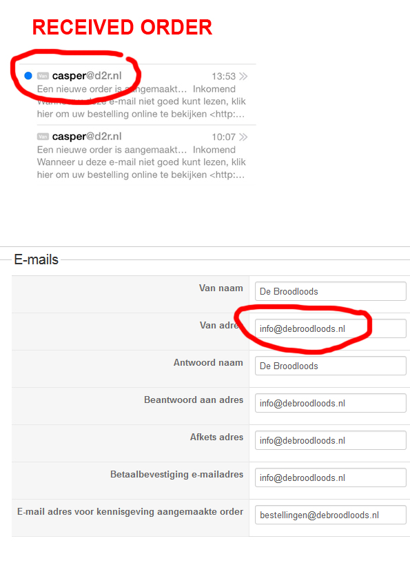 So if the customers of "Broodloods" reply to the their order, the email is send to D2R, instead of Broodloods.