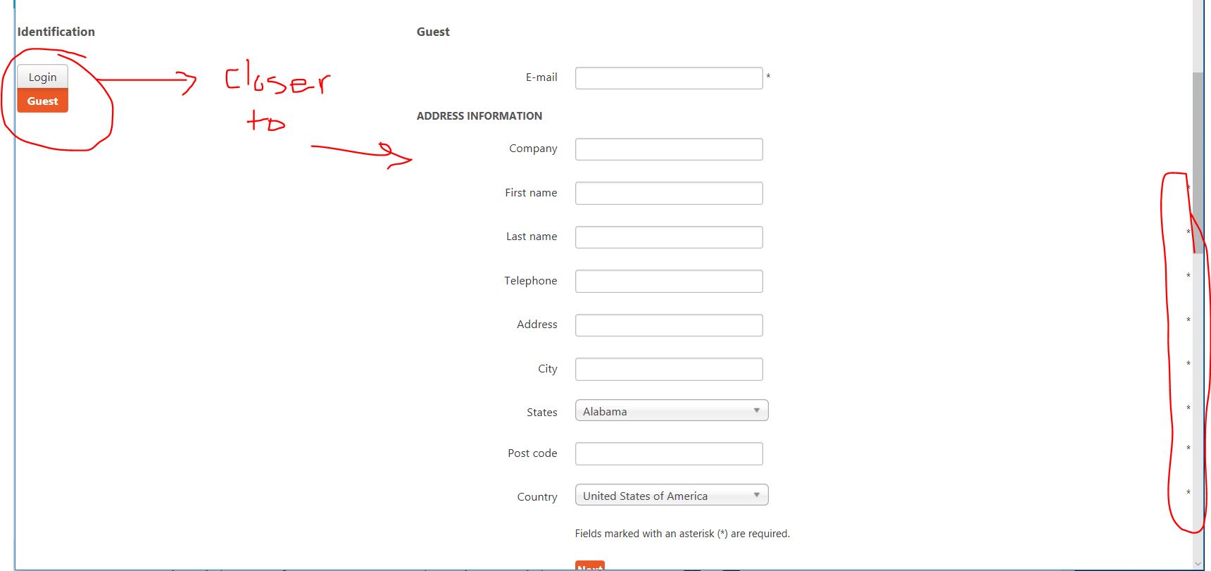 On my checkout the Guest has the required asteriks far to the right, any idea why this is happening and the fix for it?