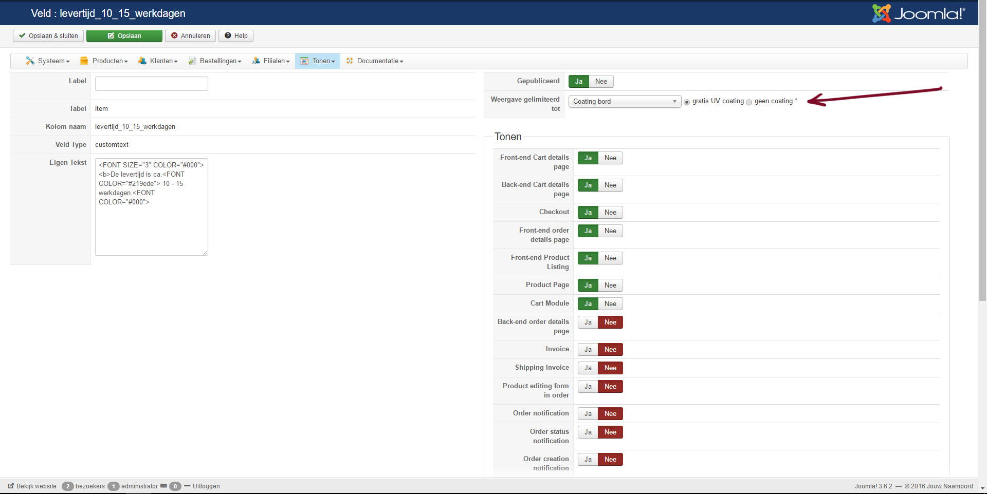 -- Joomla version -- : 3.6.2