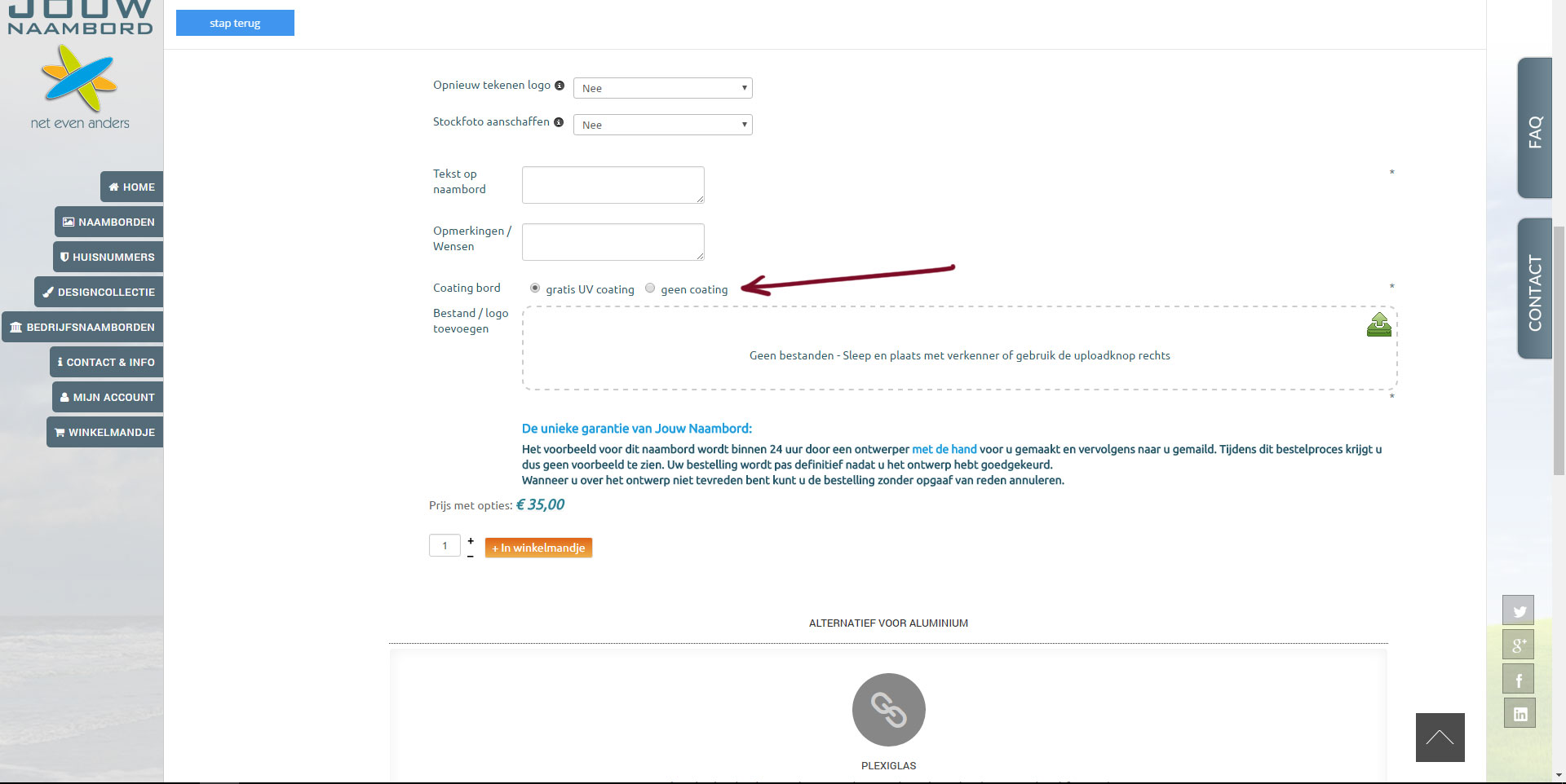 -- url of the page with the problem -- : www.jouwnaambord.nl/naamborden/aluminium-naambord-zakelijk
