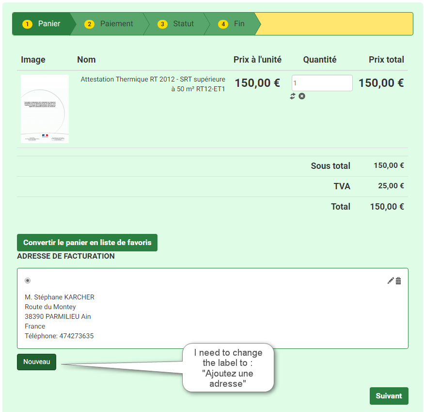 2. This is an easy one as you can use the standard translation override system of HikaShop to change that text, like any other text in the HikaShop interface: