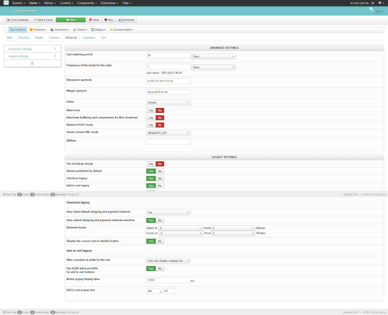 Can you provide some screenshot of your ADVANCED SETTINGS and LEGACY SETTINGS option, in Advanced tab (in your HikaShop Configuration).
