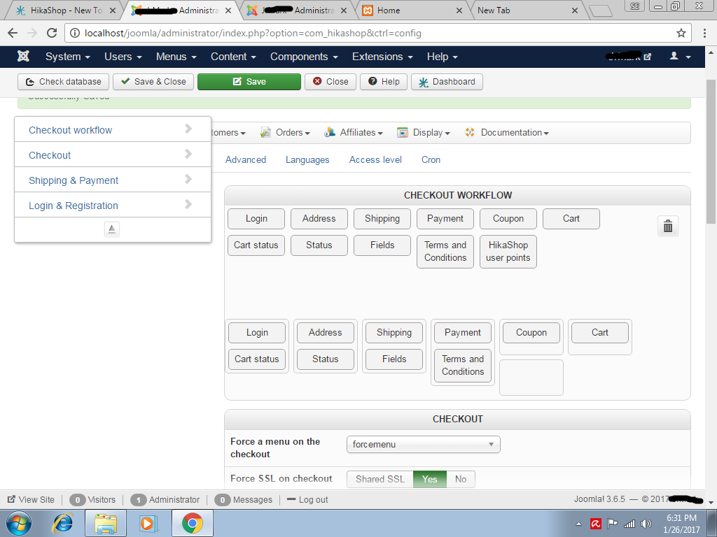 -- Joomla version -- : 3.6.5