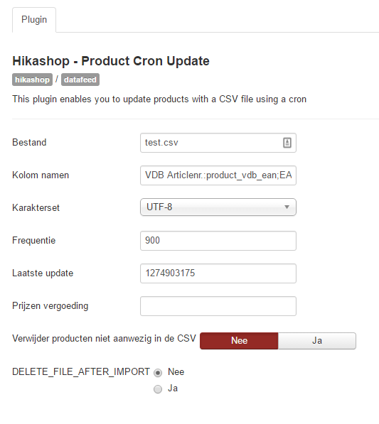 So if I understand correctly, you're using the HikaShop Product Cron Update plugin in order to import your CSV, is that right ?