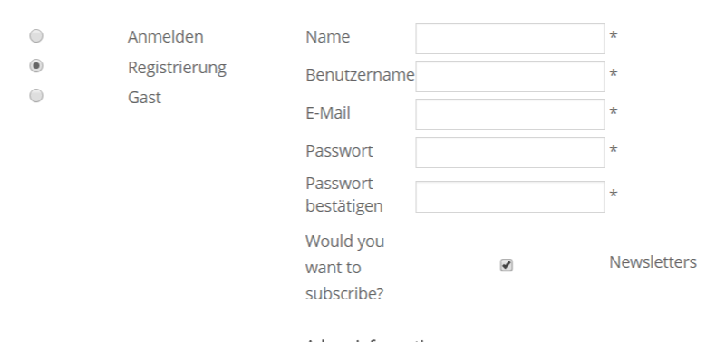 On "Register" and "Guest" checkout login form there is checkbox that is by default checked and its labels "Would you want to subscribe?" and "Newsletter" need to be translated in german. I cant find the way of changing that!